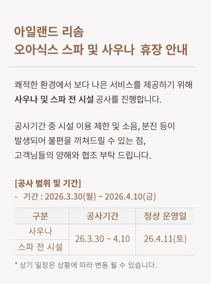 »ç¿ì³ª ¹× ½ºÆÄ Àü ½Ã¼³ ÈÞÀå ¾È³» (26.3.30 ~ 4.10)
