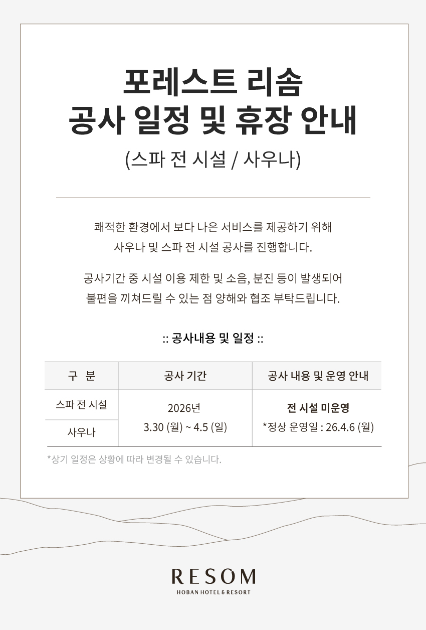 »ç¿ì³ª ¹× ½ºÆÄ Àü ½Ã¼³ ÈÞÀå ¾È³» (26.3.30 ~ 4.5)