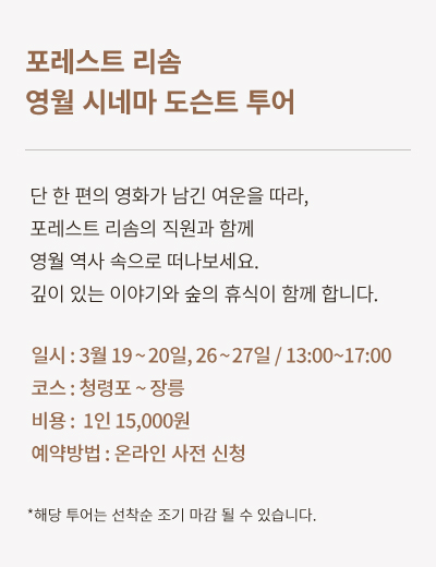 ¿õÀåÇÑ ½£À» °´½Ç·Î ¿Å±äµíÇÑ ½Ã¿øÇÑ Æ÷·¹½ºÆ®ºä¿Í ÇÁ¶óÀ̹ö½Ã¸¦ °í·ÁÇÑ ¼øÈ¯Çü °´½Ç ±¸Á¶°¡ ¿Ïº®ÇÑ ÈÞ½ÄÀ» Á¦°øÇÕ´Ï´Ù.